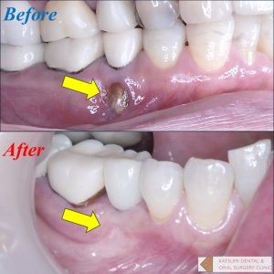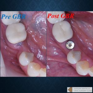 骨誘導再生法=GBR( Guided Bone Regeneration)法を併用した下顎小臼歯部のご紹介。